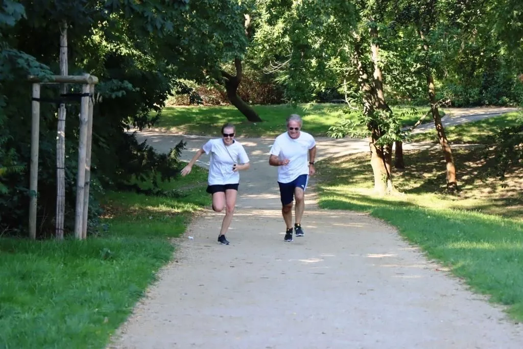 37 Sportsfreunde, bestes Wetter, wunderbare Laufstrecke in Stadt- und Schlosspark bei einem reinen Gesundheitslauf.